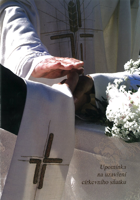 - Upomínka na uzavření církevního sňatku • Kněz žehná ruce spojené štolou
